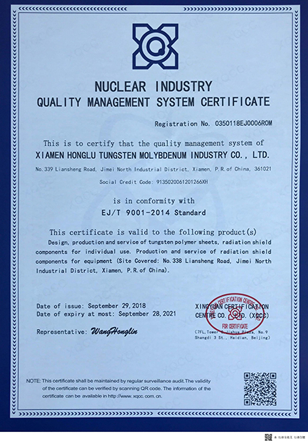 Nuclear Industry Quality Management System Certificate