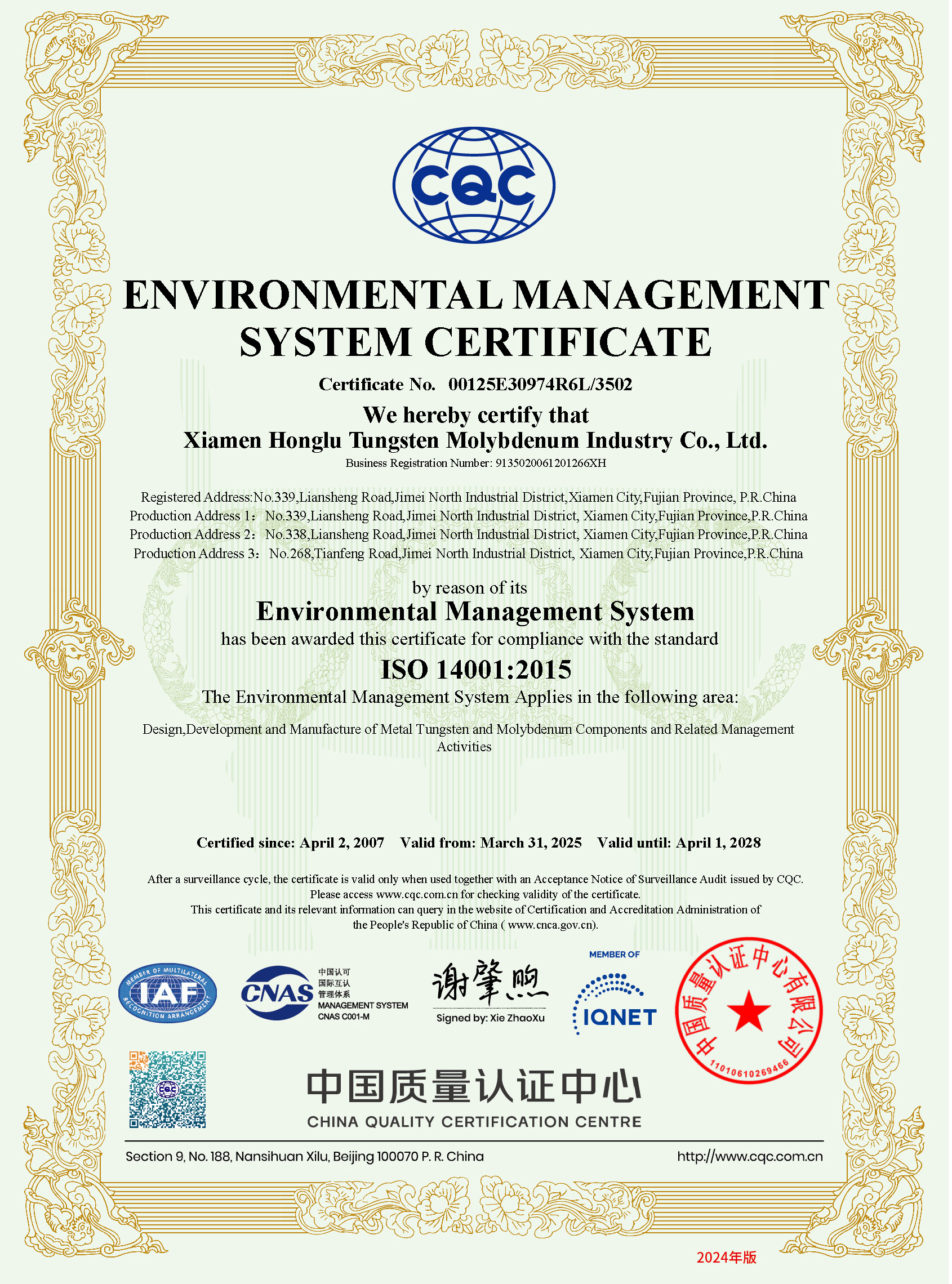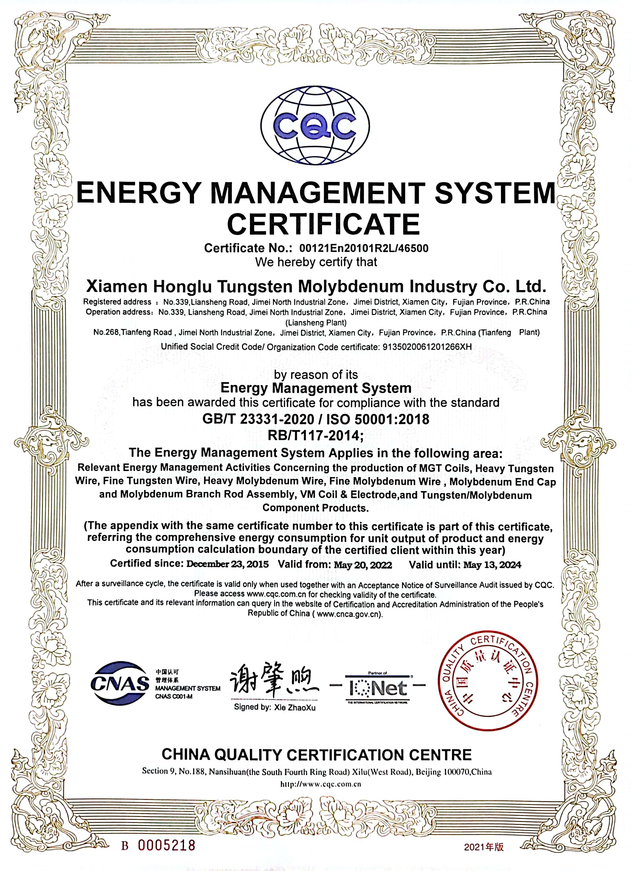 Established in 1992, Xiamen Honglu Tungsten Molybdenum Industry Co., Ltd. with registered capital of RMB 361,005,000 is a state-controlled Sino-Korea joint venture.?The Company is one of the core members of public-listed Xiamen Tungsten Co., Ltd. and is also one of the State New High-Tech Companies in China. The Company has the first “Post Doctoral Programme” in Chinese tungsten and molybdenum processing industry, and also jointly set up the “Rare Metal Processing Laboratory” with Metal Research Institute of Chinese Academy of Sciences.?