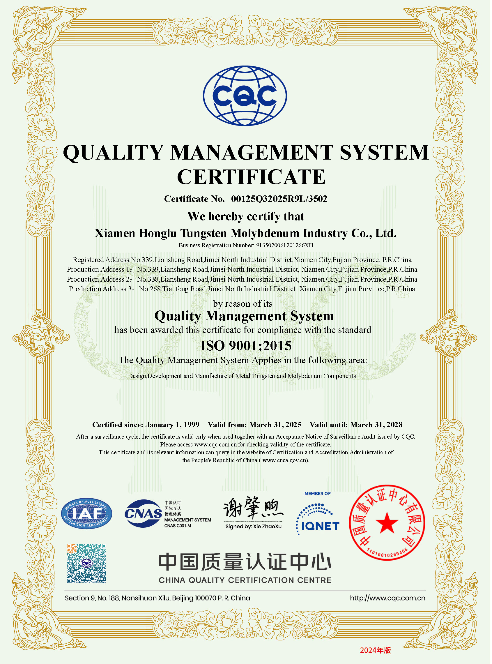 Quality Management System Certificate ISO9001