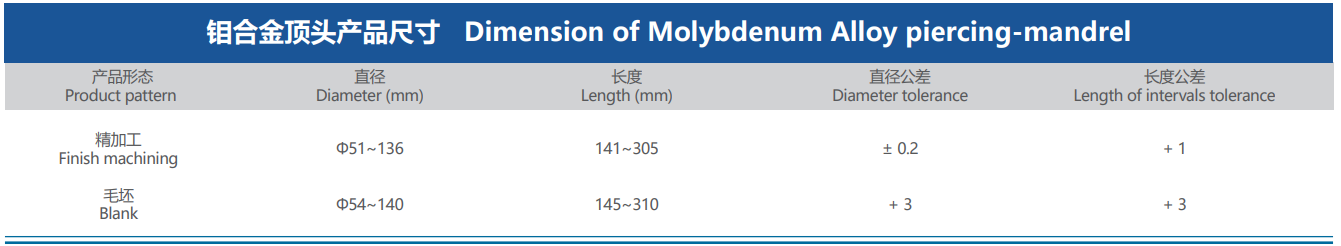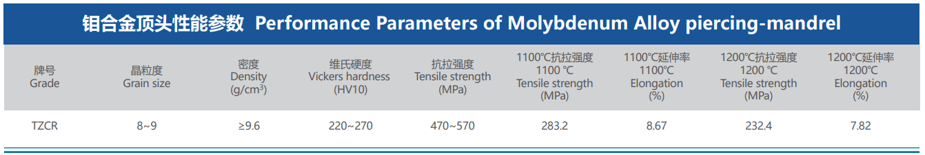 在無縫鋼管行業(yè),世界各國基本上都采用頂頭熱穿孔成形技術(shù)制備不銹鋼管,選擇作業(yè)性能優(yōu)良的鉬合金頂頭,是確保無縫不銹鋼管質(zhì)量的重要因素。????廈門虹鷺致力于研發(fā)新型TZCR鉬合金頂頭產(chǎn)品,其組織晶粒細(xì)小均勻、高溫強(qiáng)度高、耐冷熱疲勞性穩(wěn)定,能夠廣泛應(yīng)用于奧氏體不銹鋼、鐵素體/奧氏體雙相不銹鋼、鎳基合金及API耐蝕合金等材料的穿孔成形。