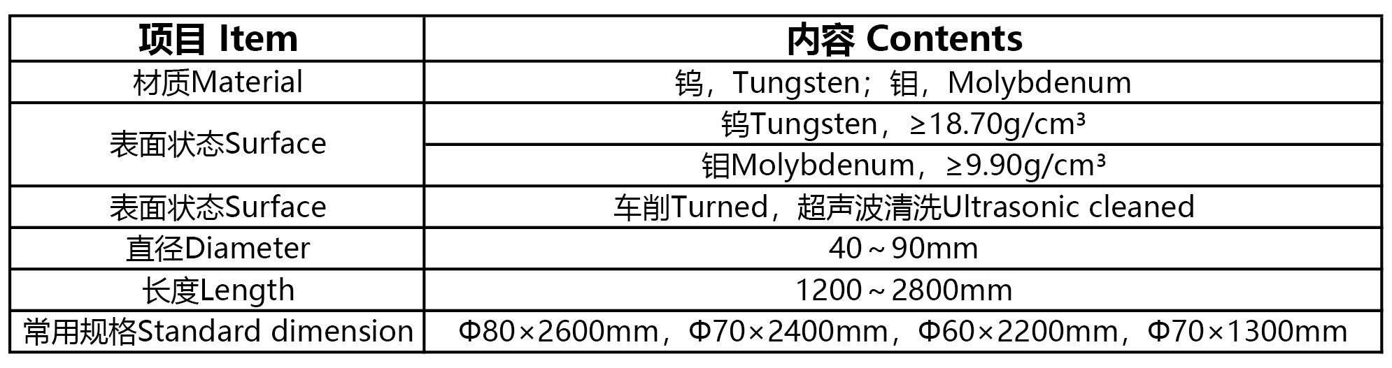 在石英連熔爐中,鎢鑭芯棒用于懸掛成型器,生產(chǎn)半導體級的厚壁石英管,廈門虹鷺擁有國內(nèi)最先進的10MN快鍛機,所生產(chǎn)的鎢鑭芯棒具有高密度、發(fā)達而均勻的纖維組織,抗變形能力強等特點。