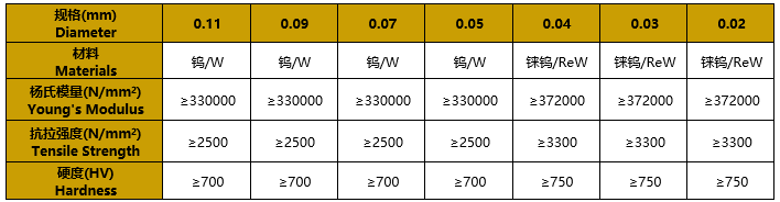 技術(shù)數(shù)據(jù) - 線針用鎢材料的性能